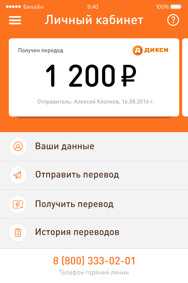 С помощью мобильного приложения «Дикси. Денежные переводы» покупатели могут отправлять и получать денежные переводы на кассе магазинов «Дикси».