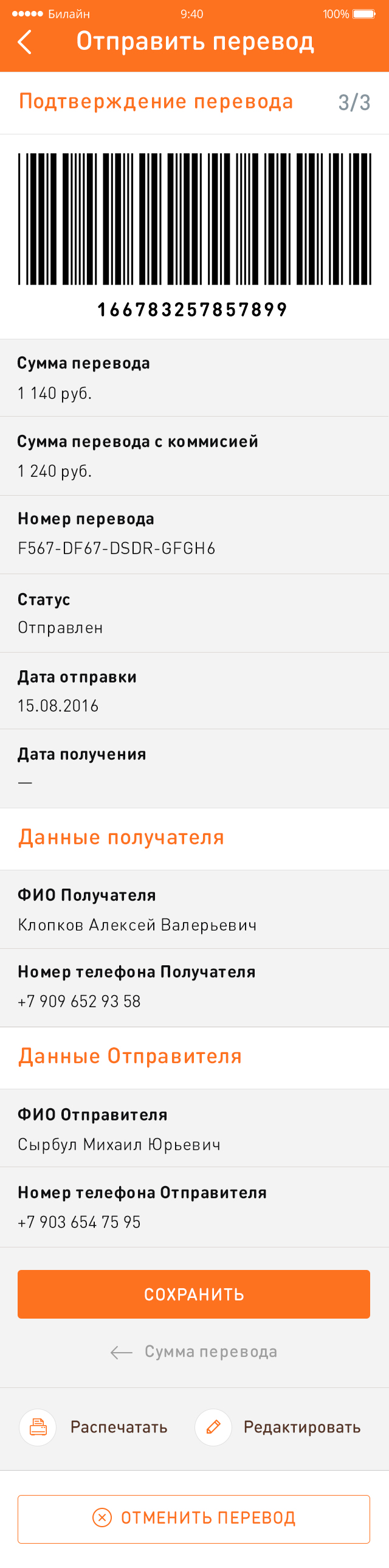 Пользователь регистрируется в приложении, указывает сумму перевода и получателя. Приложение создает уникальный временный штрихкод перевода, который необходимо предъявить на кассе. Получатель перевода также устанавливает приложение и предъявляет штрихкод на кассе, но уже для получения денежных средств.